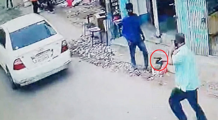 এদিকে, এ ঘটনার সিসিটিভি ফুটেজে দেখা গেছে, একটি সাদা প্রাইভেট কার রাস্তার পাশের একটি দোকানের সামনে গিয়ে থামে। ওই গাড়ি থেকে কয়েকজন বেরিয়ে আসেন এবং রাস্তার পাশে দাঁড়িয়ে থাকা এক ব্যক্তিকে মারধর শুরু করেন। এক পর্যায়ে মারধরের শিকার ব্যক্তিকে গাড়িতে তুলে চলে যান তারা। তখন ওই গাড়ির পেছনে পেছনে দৌড়াতে থাকেন এক ব্যক্তি। তাঁর হাতে পিস্তল ছিল এবং তিনি সাদা প্রাইভেটকারটিকে লক্ষ্য করে গুলি ছুড়ছিলেন।
