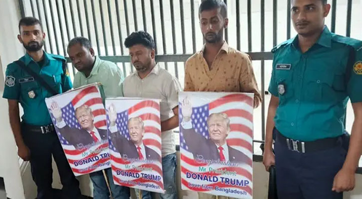 গোয়েন্দা তথ্যের ভিত্তিতে শনিবার ঢাকা মহানগরীর বিভিন্ন এলাকায় অভিযান চালিয়ে তাদের গ্রেপ্তার করে পুলিশ। তালেবুর রহমান বলেছেন, সম্প্রতি সামাজিক যোগাযোগমাধ্যমে ভাইরাল হওয়া অডিও ক্লিপে শেখ হাসিনা তার দলের নেতাকর্মীদের দিয়ে যুক্তরাষ্ট্রের নবনির্বাচিত প্রেসিডেন্টের ছবি ও যুক্তরাষ্ট্রের পতাকা ব্যবহার করে মিছিল সমাবেশের মাধ্যমে সেই ছবি ও প্ল্যাকার্ড ঢাল হিসেবে ব্যবহার করার নির্দেশ দেন।