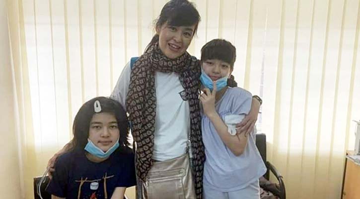 দুই মেয়ের সঙ্গে জাপানের নাগরিক চিকিৎসক নাকানো এরিকো। সংগৃহীত ছবি: