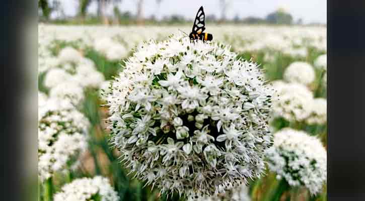 জেলা শহর থেকে ৩০ কিলোমিটার দূরে বালিয়াডাঙ্গী উপজেলার চাড়োল গ্রামে মোয়াজ্জেম হোসেনের মতো আরও অনেক কৃষক শত শত বিঘা জমিতে পেঁয়াজের বীজ উৎপাদনে চাষ করেছেন। এলাকার ফসলি মাঠগুলোর দিকে তাকালে চোখে পড়ে শুধু পেঁয়াজ গাছের সবুজ ডাঠা ও কদম ফুলের আকৃতির মতো সবুজ সাদা শুভ্র ফুল আর ফুল। চোখ ও মন জুড়ানো সবুজ ও সাদা ফুল এবং একটা-দুটা মৌমাছি ফুল থেকে মধু আহরণ প্রকৃতিতে এনে দিয়েছে এক অনন্য মনরোম দৃশ্য।