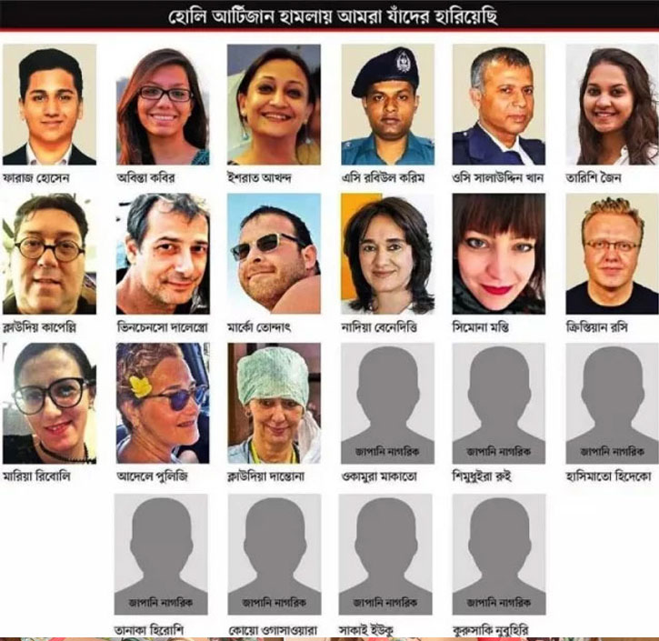 ভয়াবহ এই হামলার বিচার কাজ এখনো শেষ হয়নি : বিগত ২০১৬ সালের ১ জুলাই ঘটে যাওয়া ভয়াবহ এই জঙ্গি হামলার বিচার কাজ এখনো শেষ হয়নি। হলি আর্টিজানের হামলার ঘটনার পর দায়ের করা মামলার তদন্তের দায়িত্ব পায় ডিএমপির কাউন্টার টেরোরিজম অ্যান্ড ট্রান্সন্যাশনাল ক্রাইম (সিটিটিসি) ইউনিট। সিটিটিসি হামলার দুই বছরেরও বেশি সময় পর আদালতে অভিযোগপত্র জমা দেয় ২০১৮ সালের ৩ জুলাই। পরে ২০১৯ সালের ২৭ নভেম্বর গুলশানের হলি আর্টিজানে হামলার মামলায় সাত আসামিকে মৃত্যুদণ্ড এবং এক আসামিকে খালাস দেন বিচারিক আদালত। ঢাকার সন্ত্রাসবিরোধী বিশেষ ট্রাইব্যুনালের বিচারক মোহাম্মদ মজিবুর রহমান এ রায় দেন।