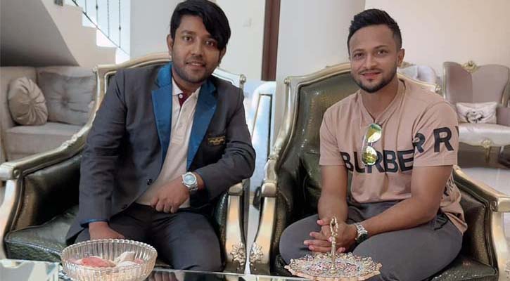 সিলেট: গত কয়েকদিন সাকিব আল হাসান আলোচনায় আরাভ জুয়েলার্স ইস্যুতে। ইংল্যান্ডকে হোয়াইটওয়াশ করার পরদিনই দুবাইয়ে যান জুয়েলার্স উদ্বোধন করার জন্য। পরে জানা যায়, তিনি যে জুয়েলার্স শপ উদ্বোধন করতে গেছেন; তার মালিক রবিউল ইসলাম ওরফে আরাভ খুনের মামলার আসামী। এ নিয়ে নানা আলোচনা-সমালোচনা তৈরি হয়।
