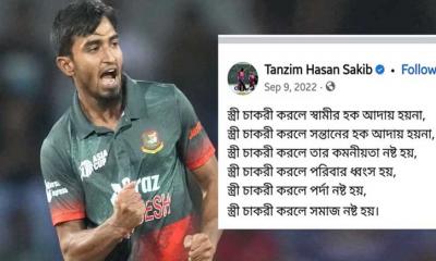 এর মধ্যে কর্মজীবী নারীদের হেয় করে দেওয়া একটি স্ট্যাটাসই বেশি সমালোচিত হচ্ছে। এসব নজরে আসার পর বিসিবি তানজিমের সঙ্গে যোগাযোগ করছে।