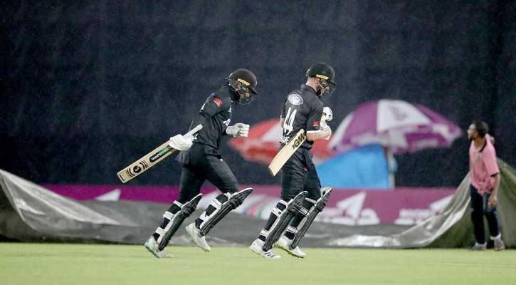 বৃষ্টিতে খেলা বন্ধ হওয়ার আগে ৩৩.৪ ওভার শেষে ৫ উইকেট হারিয়ে ১৩৪ রান তুলতে পেরেছে কিউইরা। খেলা শুরু হতে দেরি হলে আবারও কাটা যেতে পারে ওভার। দেখা যাক মিরপুরের ভাগ্যে কি আছে!