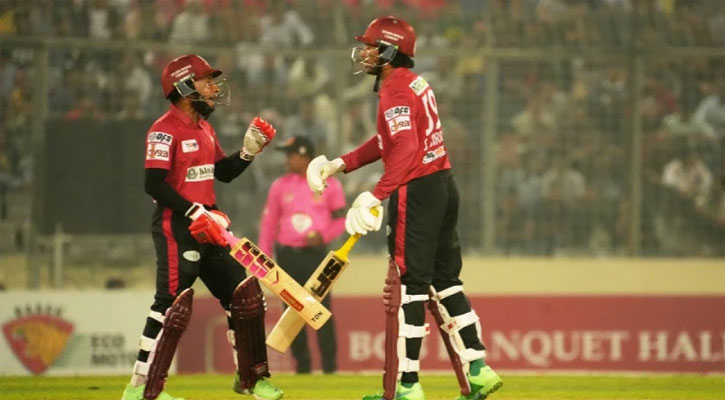 মিরপুর শেরে বাংলা স্টেডিয়ামে ১৫০ রানের লক্ষ্যে খেলতে নামা বরিশালের শুরুটা এদিন ভালো ছিল না। ২২ রানের মধ্যেই ফেরেন টুর্নামেন্টে রানের বন্যা বইয়ে দেওয়া তামিম ও ব্যাটিং অর্ডারে উন্নতি পেয়ে ওপেনিংয়ে নামা মেহেদী হাসান মিরাজ। দুইটি উইকেটই আবু হায়দার রনির। তৃতীয় উইকেটে সৌম্য সরকারকে নিয়ে ঘুরে দাঁড়ান অভিজ্ঞ মুশফিকুর রহিম। ৪৭ রানের জুটি গড়ে দলকে বিপদমুক্ত করেন তারা।
