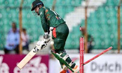 ১০০ রানের আগেই গুটিয়ে যাওয়ার সম্ভাবনা জেগে ওঠে তখন। তবে জাকের আলীর ১২, শেষ দিকে রিশাদ হোসেনের ১৩ ও তাসকিন আহমেদের ১৩ রানের কল্যাণে ১৯.৩ ওভারে ১০৬ রানে অলআউট হয়ে যায় বাংলাদেশ। আইরি, লামিচান, কামি ও পাউডেল প্রত্যেকে নিয়েছেন ২টি করে উইকেট।