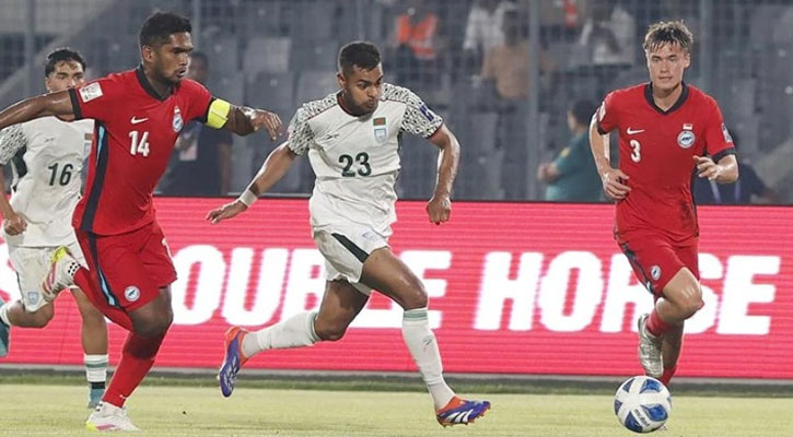 তবে ৬৫ মিনিটে রাকিব হোসেনের শর্টে বল সিঙ্গাপুরের জাল খুঁজে নেয়। এতে করে এক গোল শোধ করার সুযোগ হয় বাংলাদেশের। বাকি সময় বেশ কয়েকটি সুযোগ এলেও তা কাজে লাগাতে পারেনি বাংলাদেশ। শেষ পর্যন্ত পরাজয়কে সঙ্গী করে মাঠ ছাড়তে হয় হামজা চৌধুরীদের।