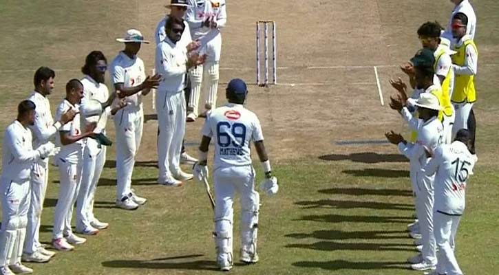 বাংলাদেশও যেন শুনেছে তার কথা। ম্যাচের আগে মুশফিকুর রহিম গিয়ে জড়িয়ে ধরেছিলেন ম্যাথিউসকে। এবার বাংলাদেশ গোটা দল মিলেই গার্ড অফ অনার দিয়ে সম্মান জানাল ম্যাথিউজকে।
