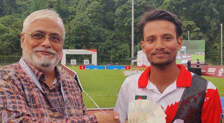 ঢাকা: সিঙ্গাপুরে অনুষ্ঠিত এশিয়ান কাপ আরচ্যারিতে সোনা জিতলেন বাংলাদেশের আরচ্যার আব্দুর রহমান আলিফ।