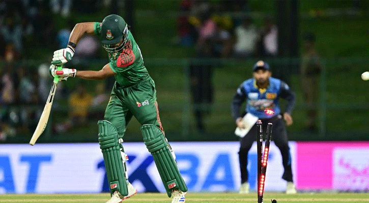 দীর্ঘক্ষণ এক প্রান্তে টিকে থেকে ফিফটি করা তাওহিদ হৃদয়কে (৭৮ বলে ৫১) বোল্ড করে দেন দুশমান্থা চামিরা। এরপর কেবল কিছুটা লড়াই করেন জাকের আলি (২৭)।