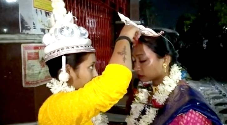 ঢাকা: অনলাইনে ডেটিং অ্যাপে পরিচয়, সেই থেকে তিল তিল করে গড়ে ওঠে ভালোবাসা। সেই ভালোবাসার টানেই পশ্চিমবঙ্গের উত্তর ২৪ পরগনা থেকে মৌমিতা মজুমদার ছুটে আসেন কলকাতায় মৌসুমী দত্তের কাছে। তবে দুই নারীর ভালোবাসার সম্পর্ক মেনে নেয়নি পরিবারের সদস্যরা। তবু ভালোবাসা বাধা মানেনি। মন্দিরে মালাবদল করে বিয়ের বন্ধনে আবদ্ধ হয়েছেন তারা।