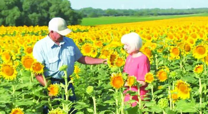 যুক্তরাষ্ট্রের কানসাসের বাসিন্দা লি উইলসন। ৫০তম বিবাহবার্ষিকীতে স্ত্রীকে বিশেষ কিছু উপহার দেয়া ইচ্ছা ছিলো তার। তাই গত কয়েক মাসে ৮০ একর জমিতে ১২ লাখ সূর্যমুখী ফুলের গাছ লাগিয়েছিলেন তিনি।