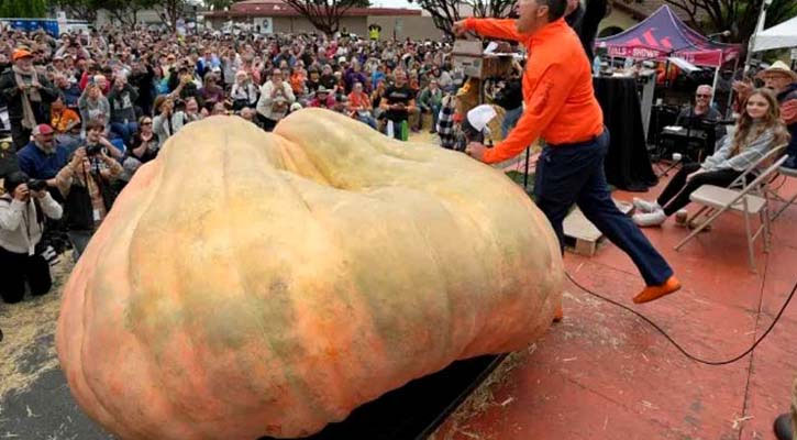 যুক্তরাষ্ট্রের ক্যালিফোর্নিয়ার হাফ মুন বেতে ‘৫০তম ওয়ার্ল্ড চ্যাম্পিয়ন পামকিন ওয়েট-অফ’ প্রতিযোগিতা অনুষ্ঠিত হয়। এতে ২ হাজার ৭৪৯ পাউন্ড বা প্রায় ১ হাজার ২৪৭ কেজি ওজনের বিশাল একটি মিষ্টি কুমড়া এনেছিলেন ট্র্যাভিস জিয়েনজার। আলজাজিরার প্রতিবেদনে এ তথ্য জানা গেছে।